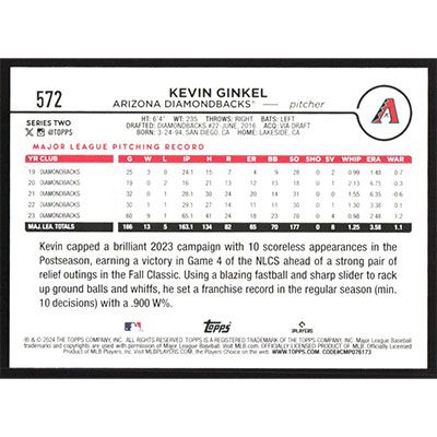 This is a 2024 Topps Kevin Ginkel baseball card. The card is #572 and pictures show condition.