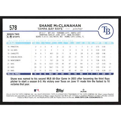 This is a 2024 Topps Shane McClanahan baseball card. The card is #578 and pictures show condition.