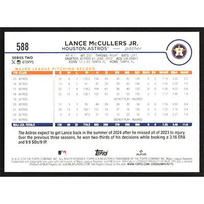 This is a 2024 Topps Lance McCullers Jr. baseball card. The card is #588 and pictures show condition.