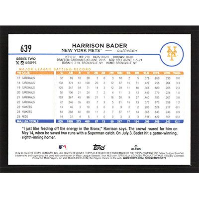 This is a 2024 Topps Harrison Bader baseball card. The card is #639 and pictures show condition.