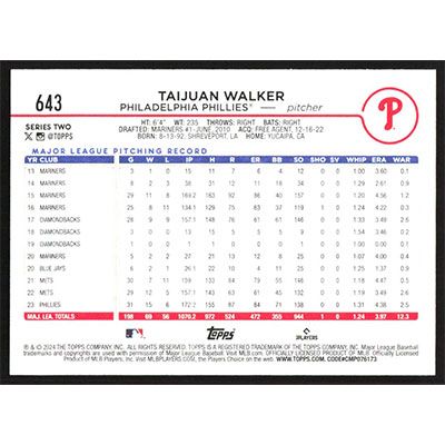 This is a 2024 Topps Taijuan Walker baseball card. The card is #643 and pictures show condition.