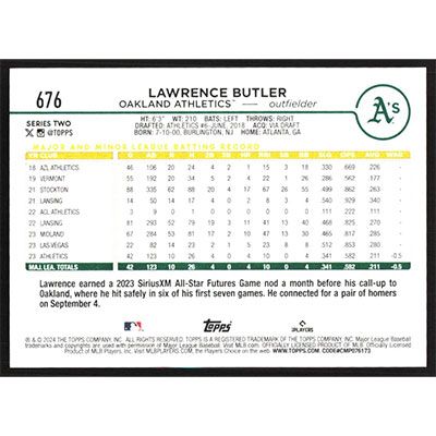 This is a 2024 Topps Lawrence Butler baseball card. The card is #676 and pictures show condition.