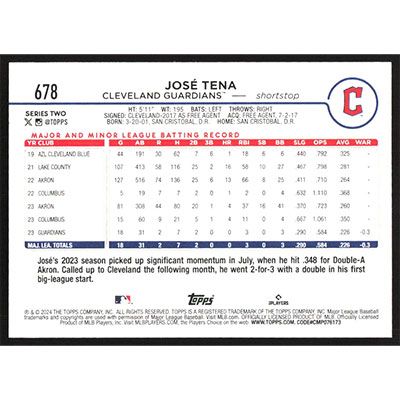 This is a 2024 Topps Jose Tena baseball card. The card is #678 and pictures show condition.