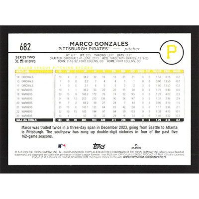 This is a 2024 Topps Marco Gonzales baseball card. The card is #682 and pictures show condition.