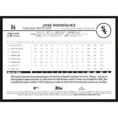 This is a 2024 Topps Jose Rodriguez baseball card. The card is #86 and pictures show condition.