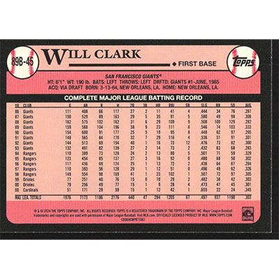 This is a 2024 Topps '89 Will Clark baseball card. The card is #89B-45 and pictures show condition.