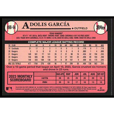 This is a 2024 Topps '89 Adolis Garcia baseball card. The card is #89B-94 and pictures show condition.