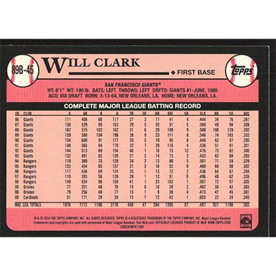 This is a 2024 Topps '89 Blue Will Clark baseball card. The card is #89B-45 and pictures show condition.