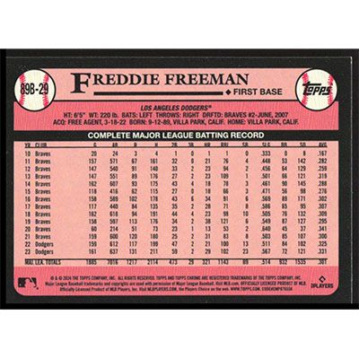This is a 2024 Topps '89 Foil Freddie Freeman baseball card. The card is #89B-29 and pictures show condition.
