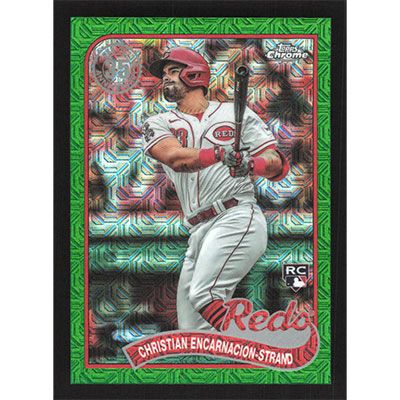 This is a 2024 Topps '89 Silver Pack Chrome Green Refractors Christian Encarnacion-Strand baseball card. The card is #T89C-88 and pictures show condition.