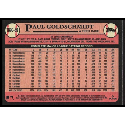 This is a 2024 Topps '89 Silver Pack Chrome Paul Goldschmidt baseball card. The card is #T89C-89 and pictures show condition. Team(s): St. Louis Cardinals