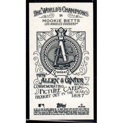 This is a 2024 Topps Allen & Ginter Mini A & G Back Mookie Betts baseball card. The card is #94 and pictures show condition. Team(s): Los Angeles Dodgers