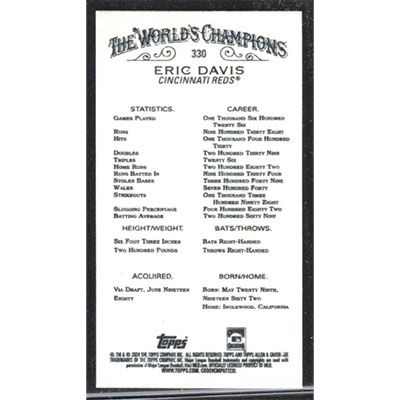 This is a 2024 Topps Allen & Ginter Mini Gold Eric Davis short print baseball card. The card is #330 and pictures show condition. Team(s): Cincinnati Reds