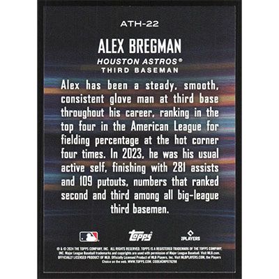 This is a 2024 Topps Around the Horn Alex Bregman baseball card. The card is #ATH-22 and pictures show condition.