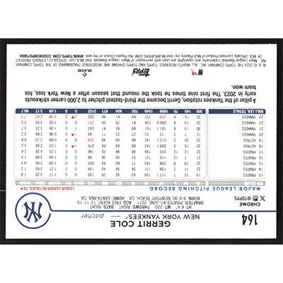 This is a 2024 Topps Chrome Gerrit Cole baseball card. The card is #164 and pictures show condition.