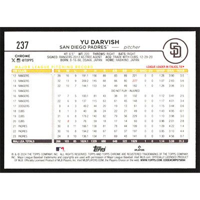 This is a 2024 Topps Chrome Yu Darvish baseball card. The card is #237 and pictures show condition.