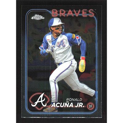 This is a 2024 Topps Chrome Ronald Acuña Jr. baseball card. The card is #250 and pictures show condition.