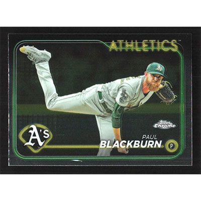 This is a 2024 Topps Chrome Paul Blackburn baseball card. The card is #43 and pictures show condition.