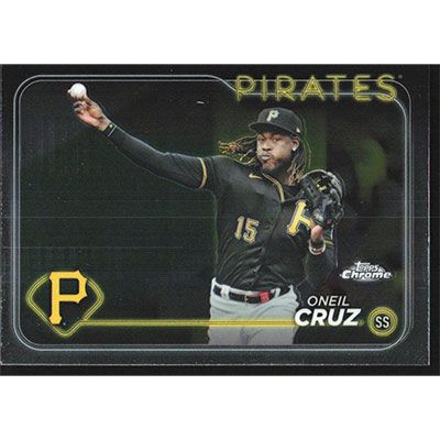 This is a 2024 Topps Chrome Oneil Cruz baseball card. The card is #98 and pictures show condition.