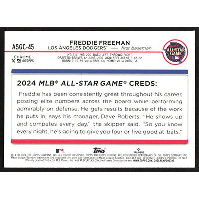 This is a 2024 Topps Chrome Update '24 All-Star Game Freddie Freeman baseball card. The card is #ASGC-45 and pictures show condition. Team(s): Los Angeles Dodgers