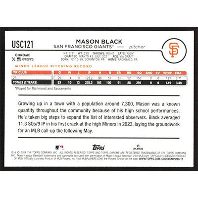 This is a 2024 Topps Chrome Update RayWave Refractors Mason Black baseball card. The card is #USC121 and pictures show condition.