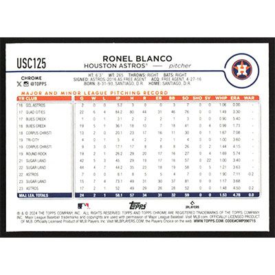 This is a 2024 Topps Chrome Update Ronel Blanco baseball card. The card is #USC125 and pictures show condition.