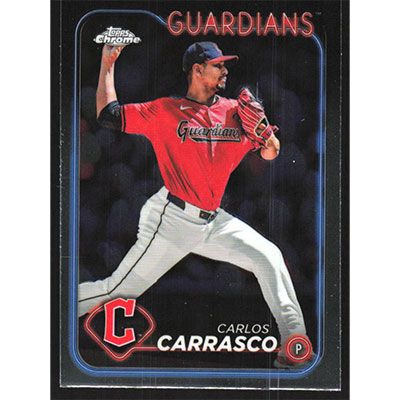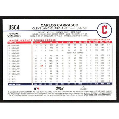 This is a 2024 Topps Chrome Update Carlos Carrasco baseball card. The card is #USC4 and pictures show condition.