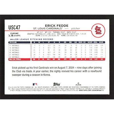This is a 2024 Topps Chrome Update X-Fractors Erick Fedde baseball card. The card is #USC47 and pictures show condition.