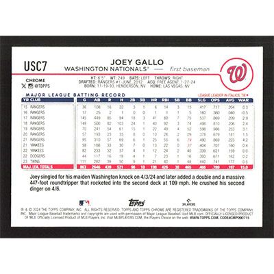 This is a 2024 Topps Chrome Update X-Fractors Joey Gallo baseball card. The card is #USC7 and pictures show condition.
