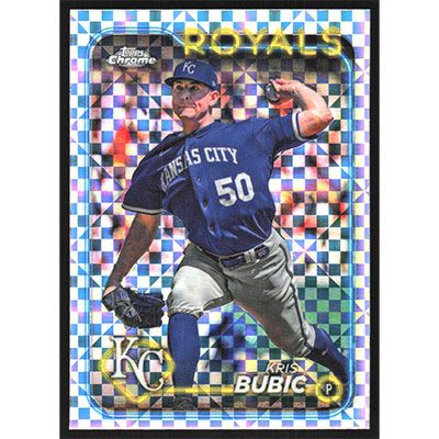 This is a 2024 Topps Chrome Update X-Fractors Kris Bubic baseball card. The card is #USC85 and pictures show condition.