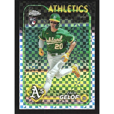 This is a 2024 Topps Chrome X-Fractors Zack Gelof baseball card. The card is #282 and pictures show condition. Team(s): Oakland Athletics Rookie Card (RC)