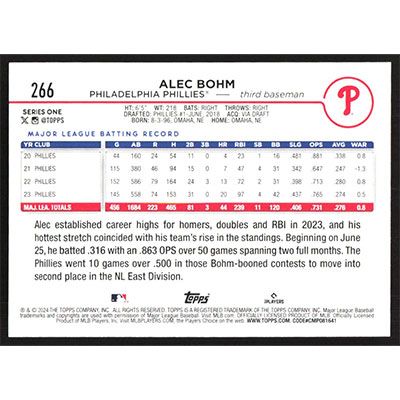 This is a 2024 Topps Easter Foil Alec Bohm baseball card. The card is #266 and pictures show condition.