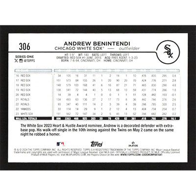 This is a 2024 Topps Easter Foil Andrew Benintendi baseball card. The card is #306 and pictures show condition.