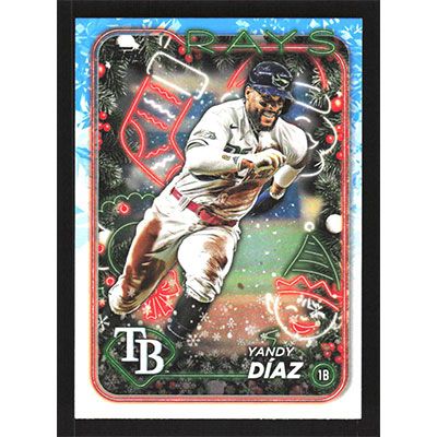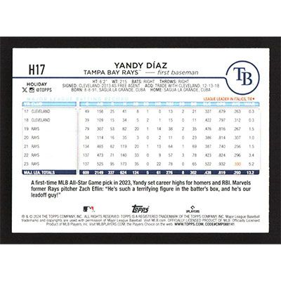 This is a 2024 Topps Holiday Yandy Diaz baseball card. The card is #H17 and pictures show condition.