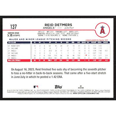 This is a 2024 Topps Rainbow Foil Reid Detmers baseball card. The card is #137 and pictures show condition.