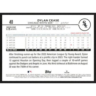 This is a 2024 Topps Rainbow Foil Dylan Cease baseball card. The card is #40 and pictures show condition.