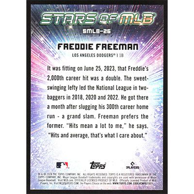 This is a 2024 Topps Stars of MLB Freddie Freeman baseball card. The card is #SMLB-26 and pictures show condition.