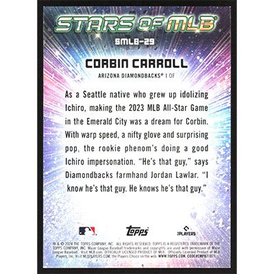 This is a 2024 Topps Stars of MLB Corbin Carroll baseball card. The card is #SMLB-29 and pictures show condition.