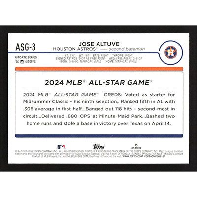 This is a 2024 Topps Update '24 All-Star Game Jose Altuve baseball card. The card is #ASG-3 and pictures show condition.