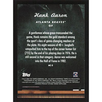 This is a 2024 Topps Update All Class Hank Aaron baseball card. The card is #AC-5 and pictures show condition.