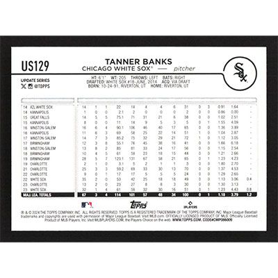 This is a 2024 Topps Update Tanner Banks baseball card. The card is #US129 and pictures show condition.
