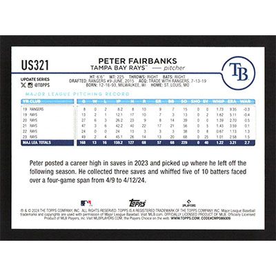 This is a 2024 Topps Update Peter Fairbanks baseball card. The card is #US321 and pictures show condition.