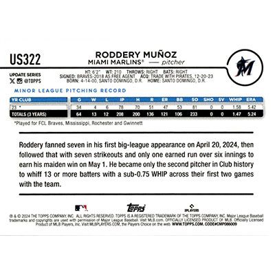 This is a 2024 Topps Update Roddery Munoz baseball card. The card is #US322 and pictures show condition.