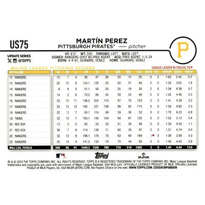 This is a 2024 Topps Update Martin Perez baseball card. The card is #US75 and pictures show condition.