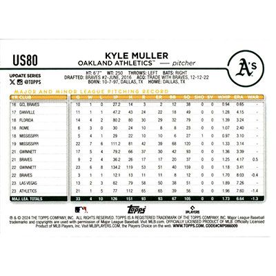 This is a 2024 Topps Update Kyle Muller baseball card. The card is #US80 and pictures show condition.