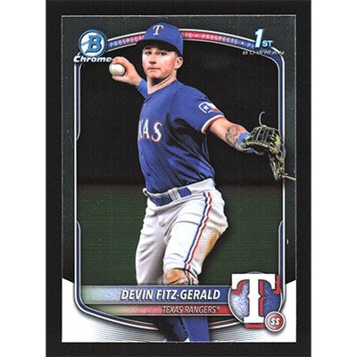 This is a 2025 Bowman Chrome Prospects Devin Fitz-Gerald baseball card. The card is #BCP-158 and pictures show condition.
