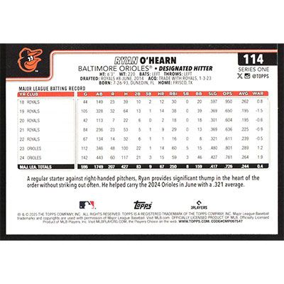 This is a 2025 Topps Ryan O'Hearn baseball card. The card is #114 and pictures show condition.