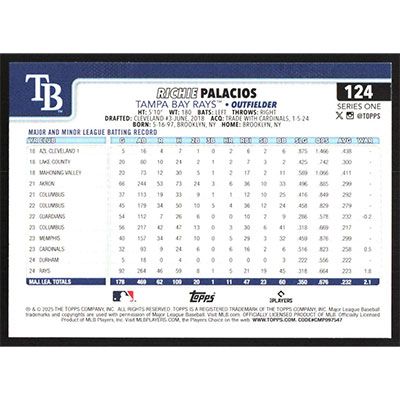 This is a 2025 Topps Richie Palacios baseball card. The card is #124 and pictures show condition.