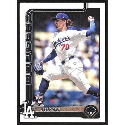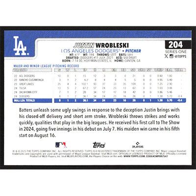 This is a 2025 Topps Justin Wrobleski baseball card. The card is #204 and pictures show condition.