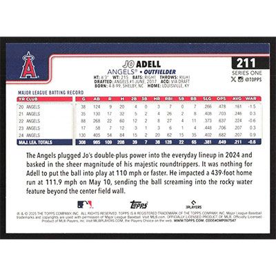 This is a 2025 Topps Jo Adell baseball card. The card is #211 and pictures show condition.